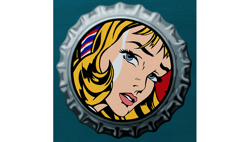 Here, these questions guide us to a place of communication and understanding as subjects shift from personal emotions and feelings, choosing a place to reflect through subjects that imply visual symbolism; ‘flowers’ represent the beauty and frailty, ‘bombs’ symbolise destruction and ‘bottle caps’ printed with emblems, and logos have value judgements of materialism.